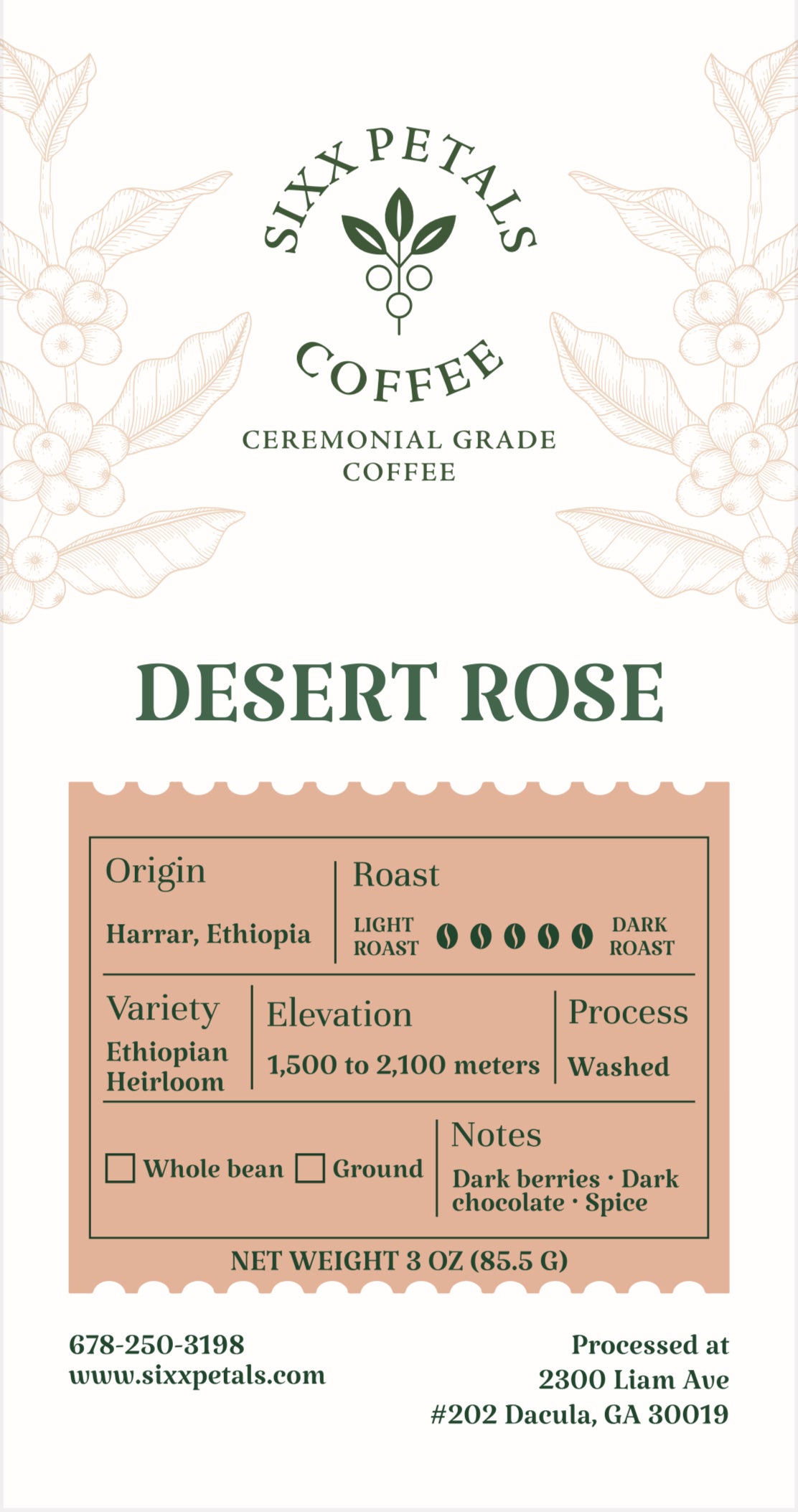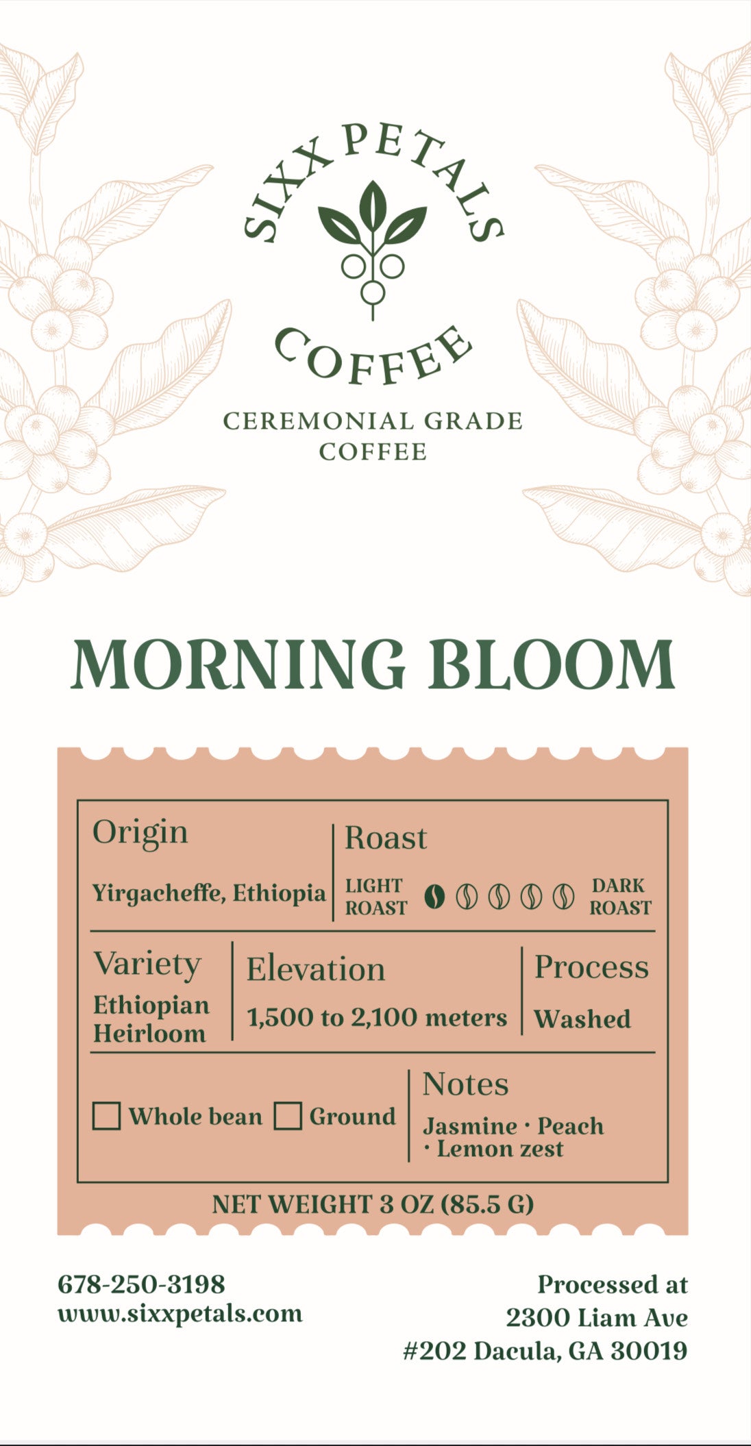 Experience the heart of Sixx Petals Coffee through the Ceremony Sampler , a curated tasting set featuring three distinct Ethiopian coffees. Each 3oz bag invites you into a different expression of flavor, bright and floral, smooth and earthy, bold and aromatic. Perfect for discovering your favorite roast or gifting to someone special, this collection is an elegant introduction to our ceremonial-grade coffees.